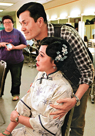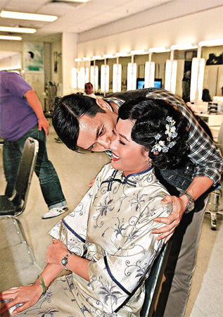 之后呂良偉在化妝間見到鄧萃雯,他們隨即互攬問候,接著呂良偉見到過氣掛名老婆周海媚,當時她正在化妝,準備拍劇集《蔡鍔與小鳳仙》,周海媚見到呂良偉表現(xiàn)有點愕然,但兩人表現(xiàn)大方,沒有避忌。呂良偉則表現(xiàn)熱情,并行到她身旁笑說:“靚女!”隨即親了周海媚右邊面頰一下。