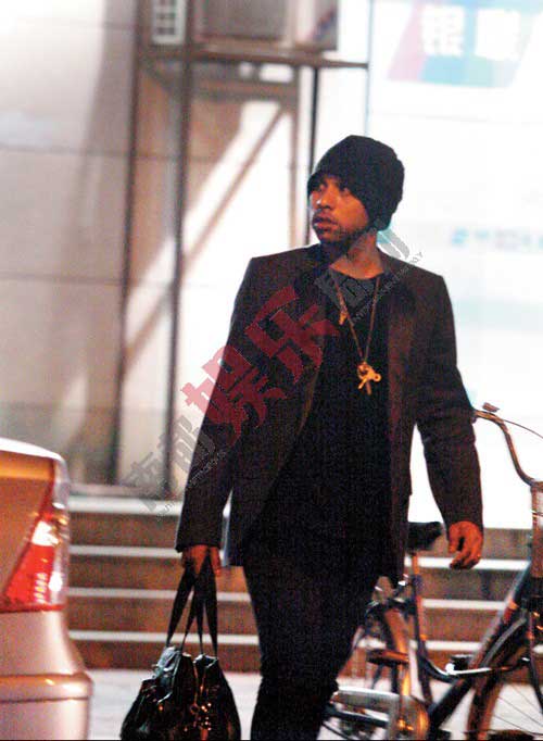 陪著Maggie Q的這位黑人男友,提著大包,樣子倒更像商人。