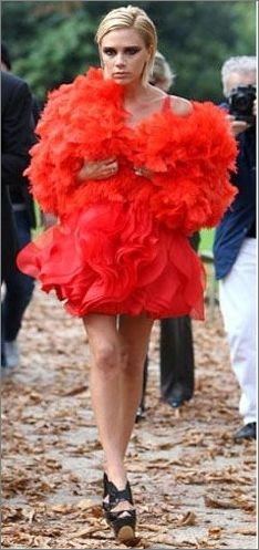 點(diǎn)評(píng):維多利亞火紅羽毛裝再次登上十厘米以上的恨天高,兩只圓規(guī)似的細(xì)腿讓短裙更加MINI,可以去扮演美國(guó)兒童們最愛(ài)的芝麻街里憨態(tài)可掬的大鳥(niǎo)先生了。