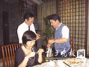 為了對在南京的聯(lián)合國副秘書長進行高端訪問,央視“高端主持人” 水均益前晚突然空降南京,天黑了才下飛機,在幾位朋友的盛邀下,直奔南京頗負盛名的吃龍蝦酒店星湖飯店,現(xiàn)學現(xiàn)考,獲得“三段證”,有趣的是一同隨來的愛妻、央視五套專跑臺球大師杯的著名記者楊迪,吃蝦技藝超過老公,得了“六段證”。
