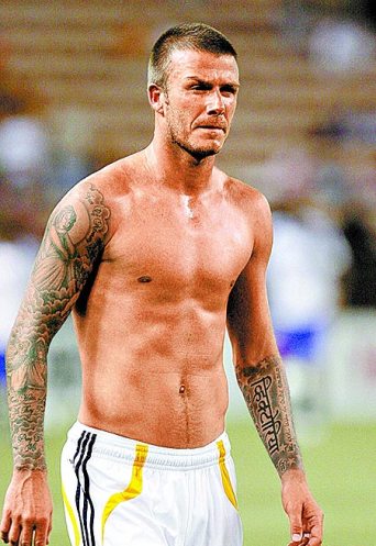 貝克漢姆常在球場(chǎng)上展露性感身材,讓女性粉絲一飽眼福。
