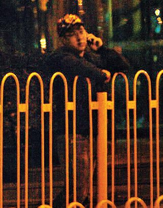 由KTV跑出馬路的霍啟剛,靠著欄桿講電話(huà)。