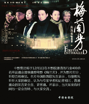 《梅蘭芳》上映首周末就在全國(guó)取得了4218萬(wàn)元的票房。中影集團(tuán)新聞發(fā)言人翁立稱(chēng),這是一個(gè)讓“各方都滿(mǎn)意”的成績(jī),他透露影片1.2億的票房是發(fā)行方的底線(xiàn)。