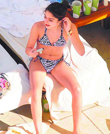 中新網(wǎng)12月9日電 “娜姐”麥當(dāng)娜赴南美巡演,女兒蘿狄絲跟著去玩,在飯店泳池畔日光浴。今年12歲的她剛開(kāi)始發(fā)育,卻學(xué)好萊塢女星穿上比基尼秀身材。