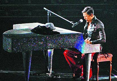 此外,他還苦練2個(gè)月鋼琴,展現(xiàn)動(dòng)靜皆宜的誠(chéng)意,他說(shuō):“我每天半夜洗完澡后練琴,是拚命記下來(lái)的!钡巴沓鯊棥度砜凇窌r(shí),因太緊張頻出錯(cuò),他說(shuō):“后面彈不好,干脆重來(lái)好了。”沒(méi)想到他重彈了5遍,最后說(shuō):“彈鋼琴好難喔!你們以為我是周杰倫!”流露可愛(ài)一面。但他的國(guó)語(yǔ)隨緊張變得更不輪轉(zhuǎn),他苦笑:“我好緊張!國(guó)語(yǔ)一直打‘折’!碑(dāng)場(chǎng)被歌迷糾正是打“結(jié)”,他說(shuō):“我又回到18年前,我錯(cuò)了!