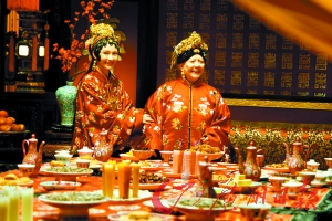 記者:今天拍的是“榮國府元宵開夜宴”的重頭戲,60多位演員都在,剛才看這場(chǎng)戲NG了幾十次?