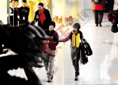 第二天凌晨5點,記者就爬起床來趕到夏雨公寓外守候。早晨7點20分左右,一對穿著厚重棉衣的男女拖著行李箱走出大門打車。記者一眼就認(rèn)出他們就是夏雨和袁泉。兩人裝扮很有點情侶裝的感覺,都戴黑色毛線帽子、穿著鹿皮旅游鞋,一副出門遠(yuǎn)游的樣子。除了兩個大的旅行箱外,夏雨還抱著一個長長的裝著滑雪板的紅袋子。夏雨和袁泉一起把行李放進出租車,然后上車朝機場方向駛?cè)。到達(dá)機場后,夏雨先下車推來行李車放行李箱,袁泉一只手幫夏雨推車,一只手挽住夏雨的胳膊。他們進入機場大廳后先是辦理登機卡,然后托運行李,最后還兌換外幣。整個過程中,兩人很少交流,即使說話也是低聲細(xì)語,但表情輕松愉快。因為大廳里很熱,夏雨脫下羽絨服,而袁泉馬上幫夏雨接住背包,袁泉還幾次自然地挽住了夏雨胳膊,無意間流露了情感。當(dāng)所有事宜辦好后,兩人并肩走進登機入口,開始了他們甜蜜的北海道滑雪之旅。