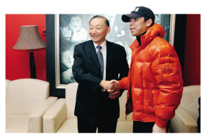 電影《非誠勿擾》昨天也在萬達影城舉行見面會,由此便促成了從未謀面的梅葆玖先生與馮小剛導演的初次見面,而兩人的見面禮則頗有些“火藥味”:馮小剛送上《非誠勿擾》的原聲碟,梅先生則送給對方自己的京劇唱片。不過,兩人一見面就以一個握手化解了賀歲檔這兩部片子的“暗戰(zhàn)”,馮小剛還以電影《梅蘭芳》中的京劇精神來為兩部影片的票房大戰(zhàn)開解:“兩部電影完全不同,但都是好電影,就像京劇里除了梅派也有別的派別,‘不分流派 不分類別’!