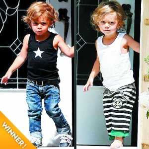 雖然湯姆·克魯斯愛女蘇瑞不得了,經(jīng)常占據(jù)娛樂頭條,但網(wǎng)民認為大美女格溫·斯蒂芬妮兩歲的兒子金斯頓·羅沙戴爾最具時尚味道,他的這身黑白牛仔配穿出了加州輪滑少年的潮流感覺。