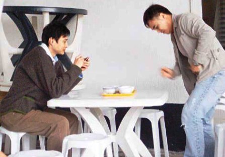 倪震拍下姜汁撞奶的相片,然后發(fā)短信給周慧敏。 (圖片來(lái)源:香港《東方日?qǐng)?bào)》)