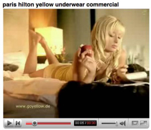 《世界新聞周刊》筆者在報道中戲稱希爾頓為“能吃掉男人的酒店業(yè)女繼承人”。廣告片里的希爾頓一頭淡金黃色的頭發(fā),身穿短得不能再短的內(nèi)褲,上身則搭配了一件同色系的比基尼內(nèi)衣,通身都是誘人的鵝黃色。