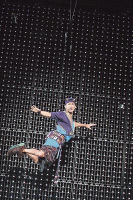 演唱會(huì)進(jìn)行期間,華仔唱《愛(ài)你一萬(wàn)年》時(shí)吊鋼絲于半空表演360度轉(zhuǎn)圈動(dòng)作,但他轉(zhuǎn)得太大力而失去平衡,華仔試圖用腳扣著鋼絲穩(wěn)定身體,但反被鋼絲纏腳倒吊半空,臺(tái)下歌迷嚇得驚叫,幸好最后他安然無(wú)恙落地。其后他與女舞蹈員在臺(tái)邊跳舞,不慎被公仔撞到險(xiǎn)墮臺(tái),女舞蹈員及時(shí)拉住他才沒(méi)事。