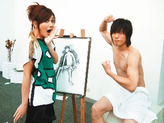 梁靜茹飾演美術(shù)班學(xué)生,對(duì)人體模特兒小花一見(jiàn)鐘情。小花在小褲褲上蓋了一條小毛巾,導(dǎo)演偏安排毛巾要不小心滑落,還要求小花盡量將內(nèi)褲頭壓低,讓他尷尬不已。