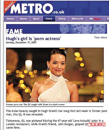 中新網(wǎng)12月18日電 上星期英國《鏡報》報道《諾丁山》(Notting Hill)男星休·格蘭特(Hugh Grant),與一名亞裔女子在倫敦一間日本餐廳當(dāng)眾纏綿,其間他的一名男友人也對該女子上下其手。昨日《鏡報》指該名女子為舒淇,惟舒淇經(jīng)理人得悉報道后作出嚴(yán)正否認(rèn),不排除采取法律行動。