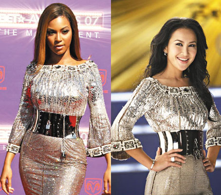 中新網(wǎng)12月19日電 東西天后不約而同,都愛D&G的閃耀性感,沉浸在愛河中的李玟,日前就穿上碧昂絲曾經(jīng)穿過的同一件手工禮服,登上長城拍奧運(yùn)MV。