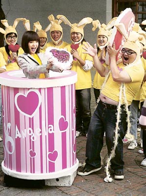 中新網1月3日電 張韶涵近日拍攝新歌《頭號甜心》MV,除了找來20多人扮求愛天使外,一向眼大大的她化上桃紅眼影,電力強勁,她笑言要趁機招惹桃花,找到真命天子。莫非她要趁機撇甩緋聞男友吳尊?