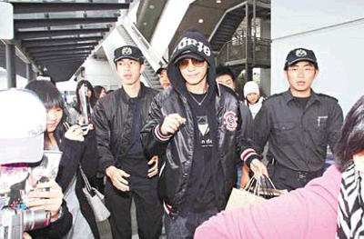 據(jù)香港太陽報報道,昨晨10時許小豬抵港,歌迷不怕寒冷天氣前往接機,并舉起“亞洲舞王”紙牌迎接偶像,包著頭的小豬在助手陪同下出閘,歌迷即一擁而上將他圍住,唱片公司特別安排了4名保安開路,小豬此行只留港3日,但工作人員推著6大箱行李緊隨,問到小豬是否很疲倦?他笑著說:“OK啦!”由于昨日不是假期,小豬接過歌迷的禮物后,即緊張地說:“你們不用上學?請假了嗎?”歌迷沒有回答,但小豬仍表現(xiàn)親民,與歌迷打成一片,有講有笑。