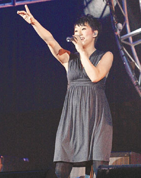 中新網(wǎng)1月21日電 林憶蓮自完成個(gè)唱后便甚少露面,前晚(19日)突然現(xiàn)身張震岳(阿岳)演唱會(huì)擔(dān)任嘉賓。一襲低胸性感晚裝,令她豐滿上圍表露無遺,同時(shí)表現(xiàn)出微隆的腹部,難免令人聯(lián)想到再度有喜。