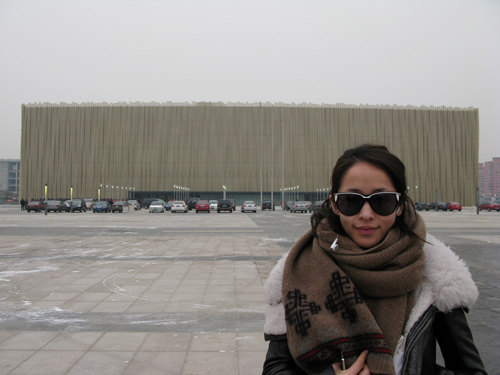 前晚演出是北京五棵松奧林匹克籃球館竣工后的首次啟用,該籃球館可容納1萬八千人,到時大部分奧運籃球賽就在這里舉行。一直想到看北京奧運籃球賽的Elva由于買不到票,前陣時間還相當郁悶,沒想到這次竟提前來到籃球館,趕在姚明投籃之前演出,心情自然是相當好;@球館座套采用網(wǎng)狀吸音裝置,其它部分都充分考慮了吸音處理,這些為賽后舉辦演唱會創(chuàng)造了條件。另外中央吊斗屏最大水平以及垂直視角為150度,無論坐在看臺那個位置,觀眾都能清楚地看到屏幕上的圖像,難怪Elva在演出后,激動地對經(jīng)紀人說有機會一定要到這個場館辦個唱,讓1萬八千人同時間和自己一同高歌。