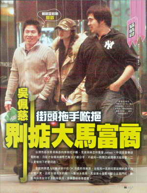 2006年吳佩慈被目睹與中田英壽密會(huì);2007年吳佩慈被拍下與撒隆巴斯太子爺逛超市,不過(guò)時(shí)隔1年又換男友。