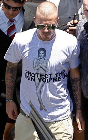圖文:貝克漢姆將維多利亞裸體T恤穿上身