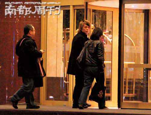 “搖滾詩人”伍佰日前來京,為將于四月中旬舉行的“你是我的花朵”演唱會造勢;蛟S為挽回日漸低落的人氣,伍佰這次全新造型亮相,一頭挑染的金色長發(fā)看上去年輕許多。當天所有活動結(jié)束后,伍佰一行乘車到“沸騰魚鄉(xiāng)”吃飯。當時正值北京交通高峰時段,車開到離飯店三百多米的地方停下,伍佰先跳下了車,他一邊穿外套,一邊就要穿過馬路。跟在伍佰身后的還有一位身材高挑、面容姣好的三十歲左右女士,手挽一個顯眼大花包。在走到“沸騰魚鄉(xiāng)”三百多米遠的距離里,馬路上來往的行人很多,但沒有人認出伍佰來。伍佰這頓晚飯足足用了兩個多小時,走出飯店時,他仍然表情嚴肅,不茍言笑。隨后在酒店門口,花包女神秘失蹤,只留下那個顯眼花包在伍佰女助手的手里……