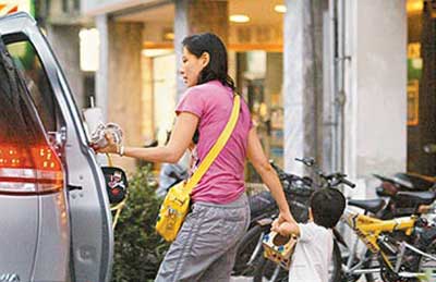 中新網(wǎng)4月10日電 臺(tái)灣女藝人陳孝萱帶著2歲6個(gè)月大的兒子鐵弟,到某大樓上畫畫課,雖說(shuō)陳孝萱與制作人詹仁雄離婚后,母兼父職,常抱著14公斤的鐵弟到處走,但當(dāng)天男司機(jī)還是幫陳孝萱把鐵弟抱下車。