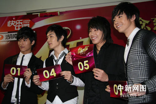 張峻寧、李承炫、東方、俞灝明(從左至右)現(xiàn)場(chǎng)抽取參賽編號(hào)。 鄧霞 攝