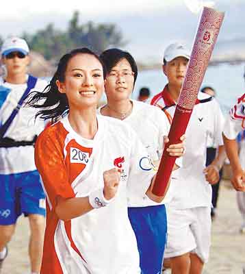 章子怡三亞傳奧運圣火 戴疑似訂婚巨鉆搶眼(圖)