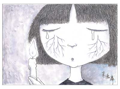 他說:“這兩天我和太太盯著電視上播出的一幕幕災(zāi)區(qū)畫面,兩人不發(fā)一語,腦袋中不斷地冒出各種問號,卻又不知以什么問號問天!币惨虼耍闷鸸P后畫出了兩幅作品,“這圖也許有意義也許沒意義,我想我的感受恐怕不及災(zāi)區(qū)朋友們的千萬分之一吧。人雖在臺灣,但心和你們在一起!(記者趙明宇)
