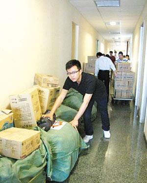 鄧超北京物資捐贈(zèng)點(diǎn)當(dāng)搬運(yùn)工接線生獻(xiàn)愛心(圖)