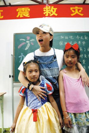 前天(31日)下午,張惠妹帶上許多玩具以及文具,趕到成都青羊區(qū)地震災(zāi)區(qū)群眾安置點(diǎn),看望當(dāng)?shù)氐暮⒆觽。一個(gè)16歲小帥哥的精彩演唱讓阿妹驚得發(fā)呆,當(dāng)場(chǎng)表示想收他當(dāng)徒弟。