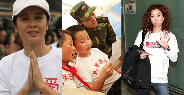 中新網(wǎng)6月2日電 四川大地震發(fā)生二十天來,演藝圈抗震救災(zāi)的熱情空前高漲,越來越多的明星參加各種賑災(zāi)活動,前往災(zāi)區(qū)送溫暖。明星總是人們愿意關(guān)注的焦點(diǎn),這些明星在受到贊賞的同時,也遭到“作秀”的質(zhì)疑。高調(diào)捐款有炒作嫌疑,低調(diào)捐款被誤認(rèn)冷漠,領(lǐng)養(yǎng)孩子被視為炒作,深入災(zāi)區(qū)被當(dāng)作虛偽,明星真的好難當(dāng),下面我們回顧下這些天明星赴災(zāi)區(qū)的事跡。