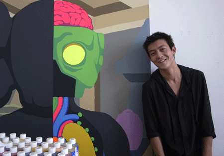 據(jù)香港《太陽報(bào)》報(bào)道,陳冠希帶著一雙即將在其潮店Juice發(fā)售、名為“Visvim Clot Royale Christo”的鞋子送給KAWS做見面禮,對(duì)方火速將陳冠希新照片與鞋子的相片上載博客。照片中膚色與發(fā)色都變黑的Edison站在彩色繽紛的巨畫前拍照,笑容燦爛,看上去心情甚佳。