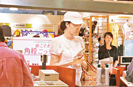 中新網(wǎng)6月6日電 日前,名模熊黛林與女性友人逛銅鑼灣時代廣場,素顏的她戴著帽子、一身便裝搭配露趾涼鞋,大掃化妝品及護膚品。