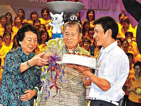 華仔在活動尾聲時捧生日蛋糕,與劉媽媽及2000名歌迷一起為劉爸爸慶祝生日。