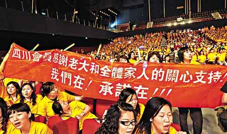 來自四川的歌迷舉起橫額,感謝華仔一直支持四川災民。