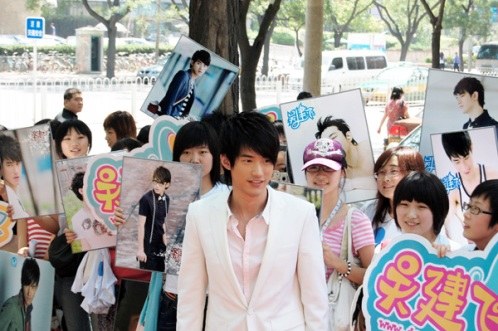 發(fā)布會(huì)當(dāng)天,現(xiàn)場(chǎng)人潮攢動(dòng),眾多歌迷從外地專程趕來,癡心的小“飛鼠”們穿著統(tǒng)一的會(huì)服,高舉著各色的燈牌,一遍又一遍的呼喊著吳建飛的名字,焦急,緊張,期盼的氣氛幾乎讓在場(chǎng)的每個(gè)人手心都滲出了汗水,所有人都在期待著今天的主角吳建飛的出現(xiàn)。下午1點(diǎn)半,一輛加長(zhǎng)的超豪華林肯轎車突然映入了大家的眼簾,伴隨著一陣陣的驚呼,轎車?yán)镒叱隽艘簧戆咨餮b的吳建飛,站在眾人面前的“新一代歌壇小天王”吳建飛今天化身成為了風(fēng)度翩翩的貴公子,用他特有略帶羞澀的微笑向到場(chǎng)的所有朋友們致謝。