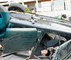 霆鋒每次拍攝電影都十分落力,縱然危險動作亦親自上陣賣命演出,昨日亦不例外,他需要拍攝多個飛車和撞車的場口,還需要在一輛已翻轉(zhuǎn)的車廂內(nèi)倒掛進(jìn)行拍攝。霆鋒拍攝前不停與導(dǎo)演研究劇情及演法,當(dāng)看到工作人員未能完全清理地上的玻璃碎,為了避免無謂受傷,他更親自拿起掃帚慢慢將玻璃碎完全清除,之后再戴上護(hù)肘才進(jìn)入車箱試位。