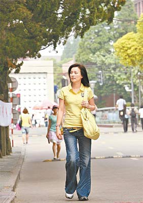 張庭走在校園中,重溫當(dāng)學(xué)生的感覺。
