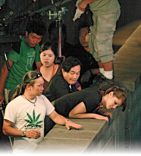陳奕迅于香港中環(huán)蘭桂坊與一名外籍女演員拍外景,心情大好的他更不時與“鬼妹”調(diào)情及對稿,場面溫馨。(圖片來源:香港《星島日報》)