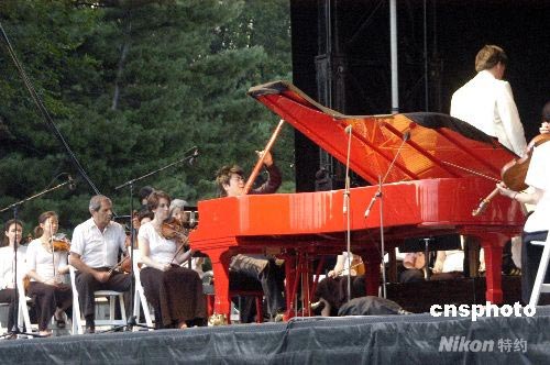 當?shù)貢r間7月15日晚,中國青年鋼琴家郎朗首次在紐約中央公園音樂會獻藝,他與紐約愛樂樂團合作,演繹了柴科夫斯基第一號鋼琴協(xié)奏曲。郎朗宣布現(xiàn)場演奏用的斯坦威限量版鋼琴將在網(wǎng)絡(luò)拍賣,所得款項全部用于支援中國四川地震災(zāi)區(qū)重建。中新社發(fā) 李靜 攝