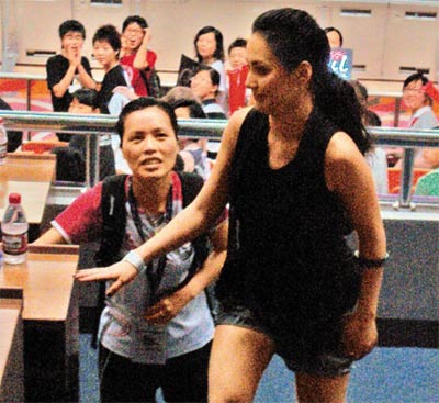 中新網(wǎng)8月6日電 香港藝人“艷照”風(fēng)波女主角鐘欣桐(阿嬌)昨晚終于在浙江復(fù)工,為美國(guó)與澳大利亞女籃于奧運(yùn)前舉行的熱身賽主持開(kāi)球禮。阿嬌因艷照事件形象及事業(yè)直插谷底,昨晚她出場(chǎng)時(shí)惹來(lái)近千名觀眾起哄。