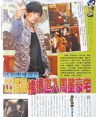 據(jù)臺灣媒體引述某周刊報道,7月23日晚間約9時,江語晨駕著傳聞中周董送她的BMW深灰色小車,直駛周董在臺北牯嶺街“元大欽品”豪宅的車庫,由于她在入口處并未被攔下,該刊推測,她應(yīng)持有豪宅鑰匙與遙控器。大約10分鐘后,江語晨將車開出,到承德路民宅,接了親友上車,一路送親友到目的地后,最后才返回自己光復(fù)北路住處。
