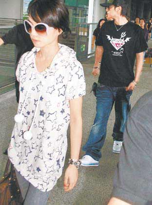 昨午約四時十五分,羅志祥和蔡依林乘搭同一班飛機抵港,兩人前后腳由閘口步出離境大堂,戴烏蠅鏡的蔡依林行在前面,戴大黑超的羅志祥則走在后面,表現(xiàn)出紳士風度,守護蔡依林,還有十位保安在旁護駕,他們發(fā)現(xiàn)記者拍照,即展露高度默契,全程都沒有交流。記者問他們之前是否一齊去日本?兩人都沒回答。