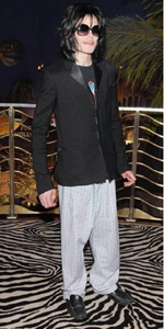 邁克爾·杰克遜近年飽受不利消息困擾,被指周身債之余,唱片銷量也大縮水,不過并沒有影響他慶祝50大壽的心情。上周四他現(xiàn)身賭城Planet Hollywood餐廳,與11歲兒子Prince Michael、10歲女兒Paris及6歲幼子Blanket一起吃晚飯,當(dāng)日邁克爾心情甚佳,對記者面露笑容,他坐著輪椅,全身用大披風(fēng)緊包,看來十分虛弱,而他拍照時(shí)西裝外套下露出的睡褲,格外引人注意。
