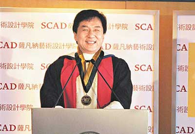 成龍日前獲美國薩瓦納藝術(shù)學(xué)院頒發(fā)名譽(yù)教授。