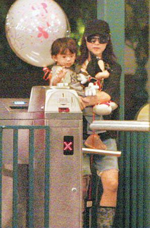 前晚8時,張柏芝抱著兒子步出迪斯尼時,手上拎著5大袋戰(zhàn)利品,其中米老鼠布偶還被張柏芝抱在手上,而Lucas則是手拿巨型變色氣球玩?zhèn)不停。