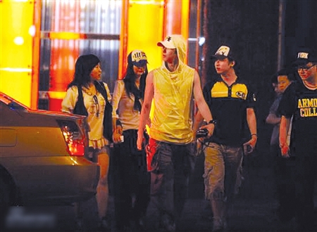 凌晨?jī)牲c(diǎn)左右,韓庚一群人先后走出了飯店,雖然已經(jīng)夜深人靜,但韓庚卻還是小心翼翼,甚至把滑雪衫的帽子也罩在了頭上,造型看上去有點(diǎn)滑稽。第一次盯拍韓庚,記者覺(jué)得他在外出時(shí)比王菲那些大腕顯得還要謹(jǐn)慎小心,真應(yīng)了那句俗話(huà)——“人怕出名豬怕壯”。