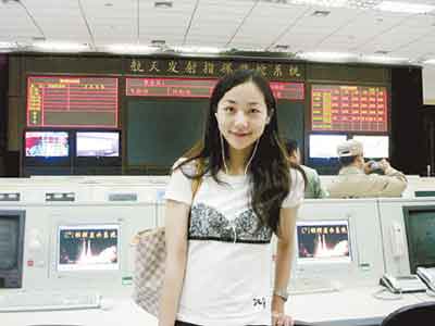 記者在博客上看到,果然有兩張攝于酒泉“神州七號”發(fā)射基地的照片。照片上,韓雪背了一個挎包,滿臉笑容地坐在發(fā)射基地指揮間內(nèi),表情十分興奮。她寫道:“進入酒泉衛(wèi)星發(fā)射中心,大家都很興奮。不過就屬我和我們家小寧動作快,真有以前秋游的勁頭,總是跑在最前面。這不,占了個好位置,當了一把神七的‘0號指揮員’,感覺不一樣!”